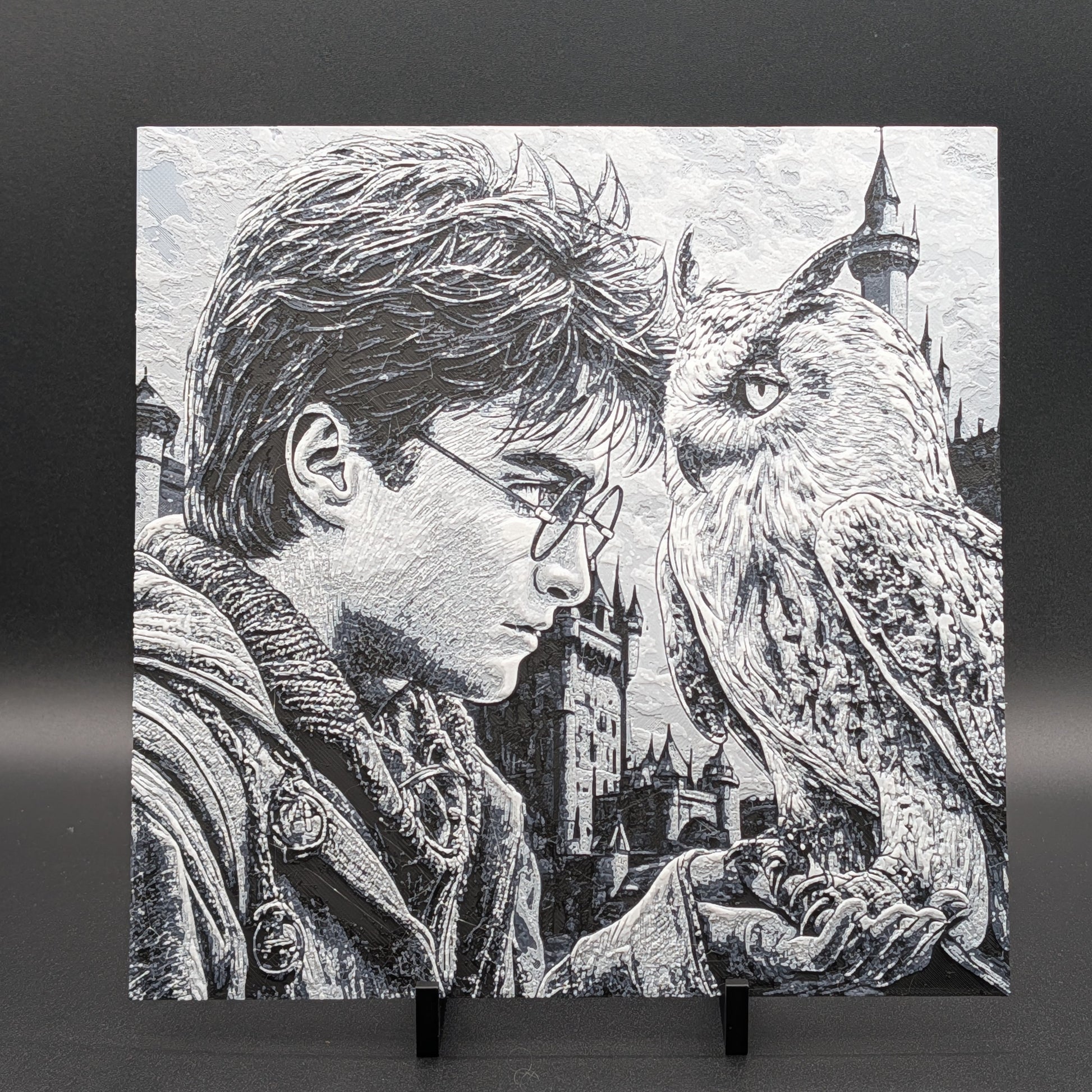 Combining 2D art with 3D printing, HueForge give art pieces a whole new dimension. By blending different colors at different opacities and layer heights, HueForge transforms flat images into works of art, emulating the color blending of pigmented painting. Each art piece comes with a frame.